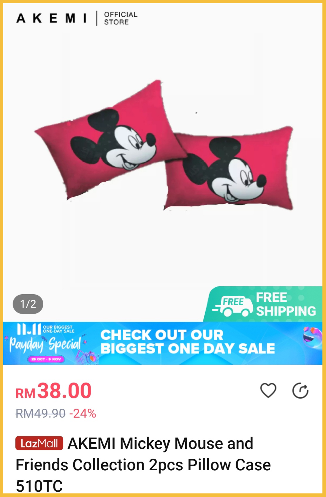 ▼ AKEMI Mickey Mouse and Friends Collection 2pcs Pillow Case 510TC – RM49.90 RM38