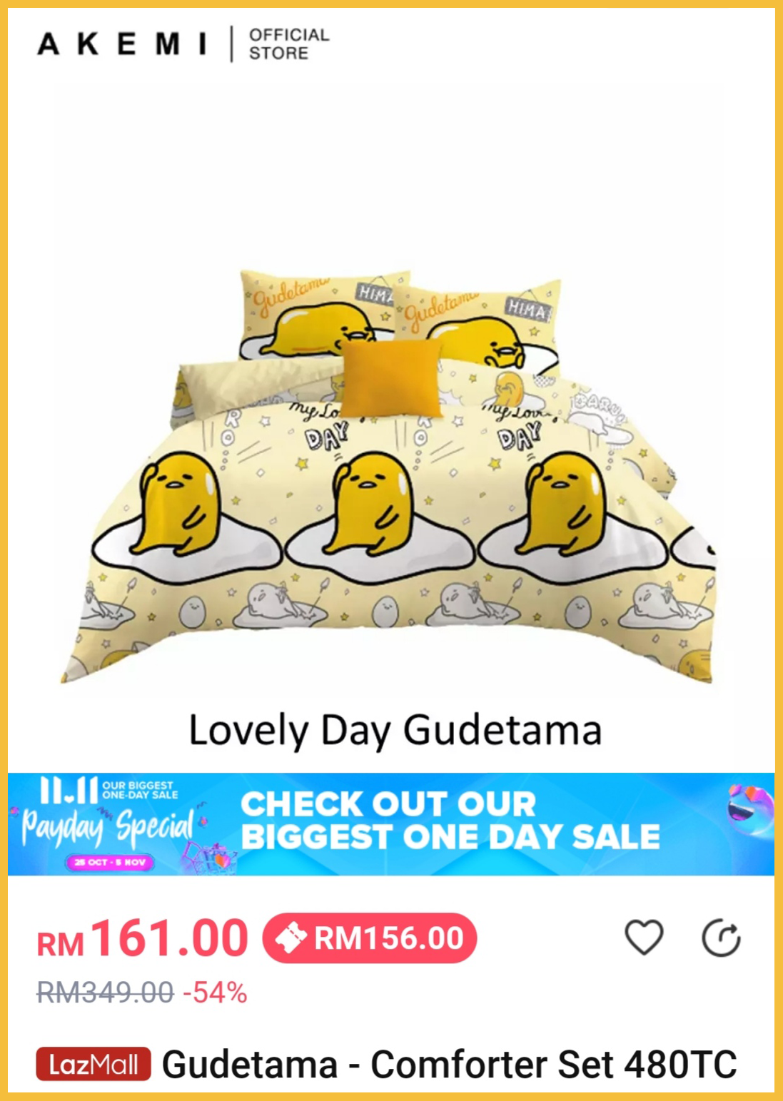 ▼ Gudetama – Comforter Set 480TC – RM349 – RM519 RM156 – RM228