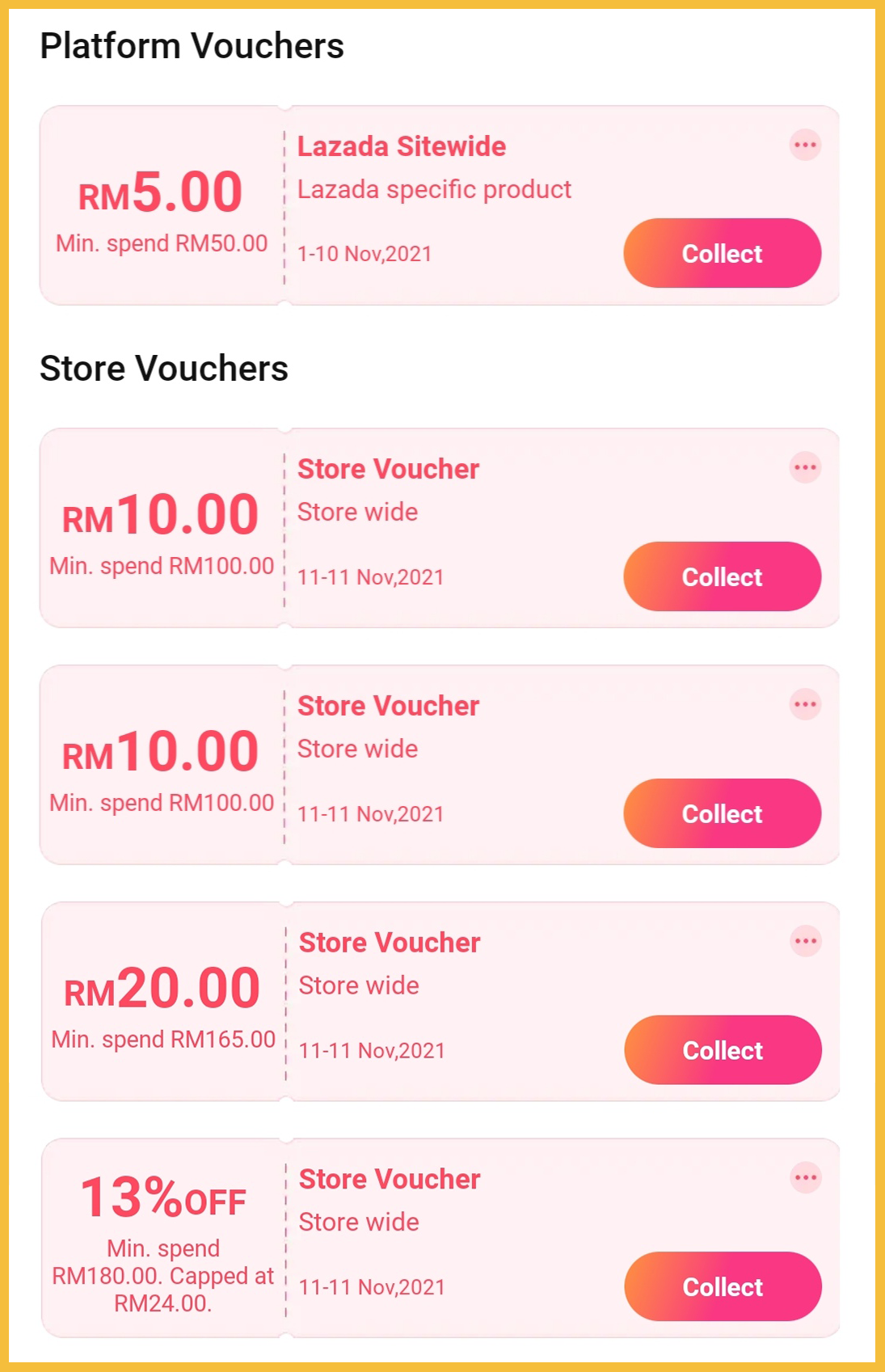 ▼ 还有~从即日起至11月11日,通过Lazada App 每日领取Lazada Bonus 奖励!每消费RM100 就可额外折扣RM10!在你付款时,可合拼不同的商家一起结账,以及叠加其他Lazada 折扣券哦!