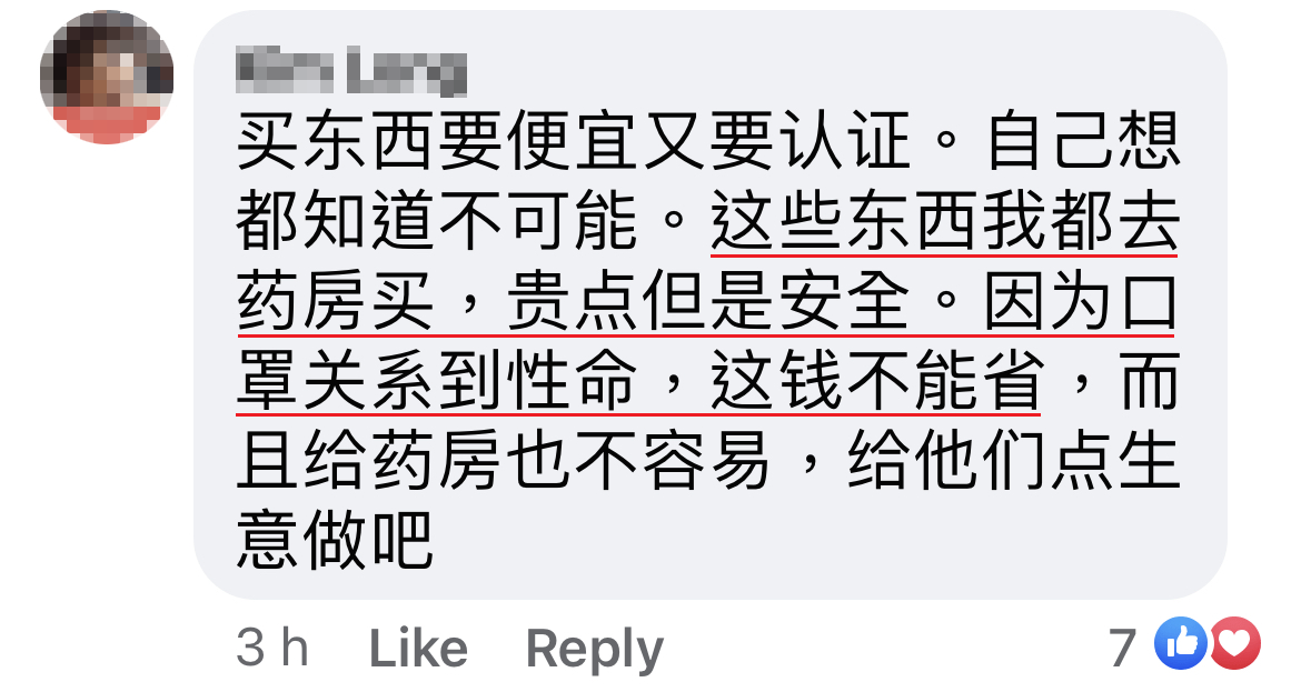 ▼ 但有的网友则为买家平反,口罩是否有认证其实很重要。