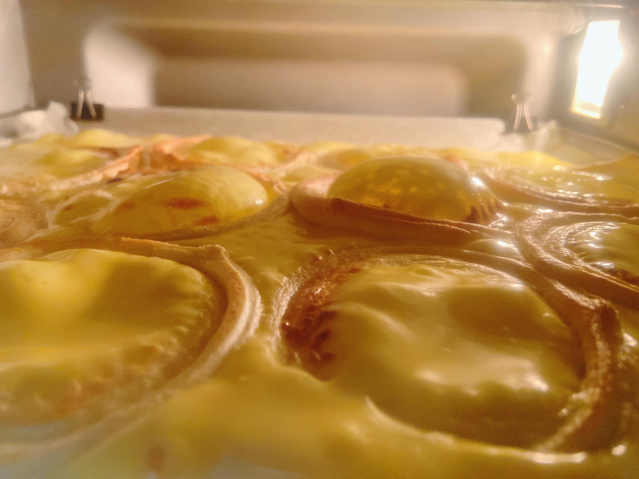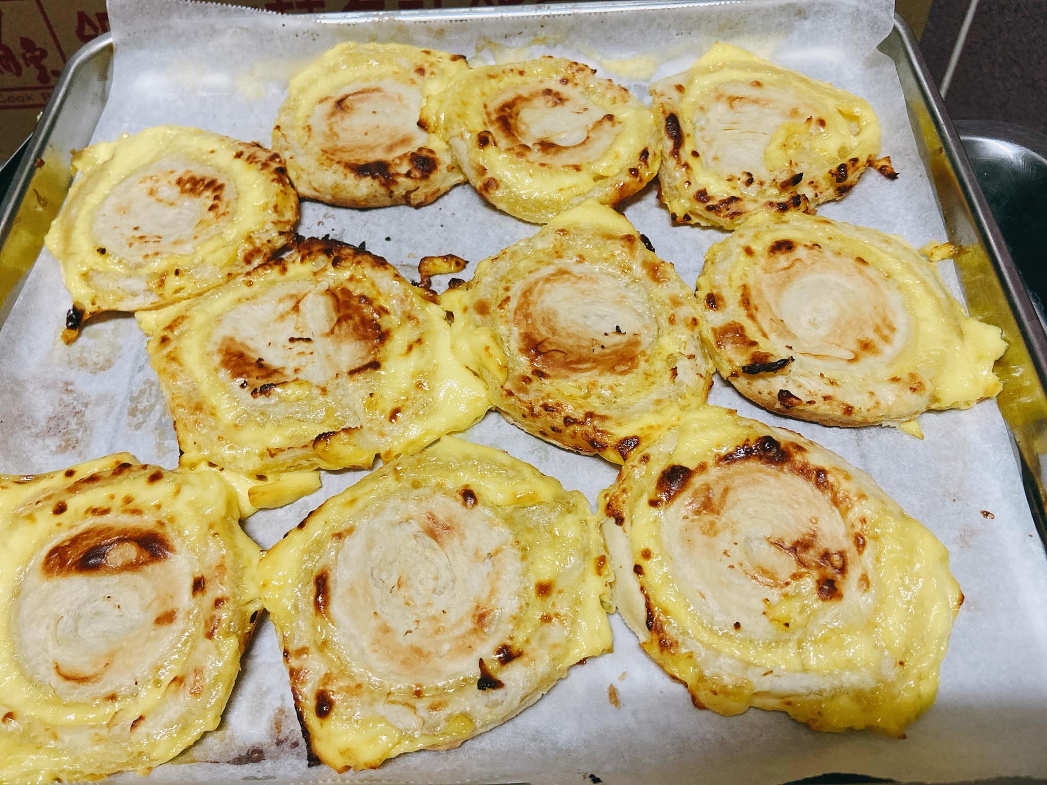 照片 ⑤ :变派了,但下面的皮没酥,又翻面烤。