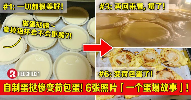 台湾一位妈妈在脸书群组分享自制蛋挞的“翻车过程”,仅仅6张照片就可以看懂一整个“坍塌事件”的进化过程,从蛋挞变成了派,最后再变成了荷包蛋!