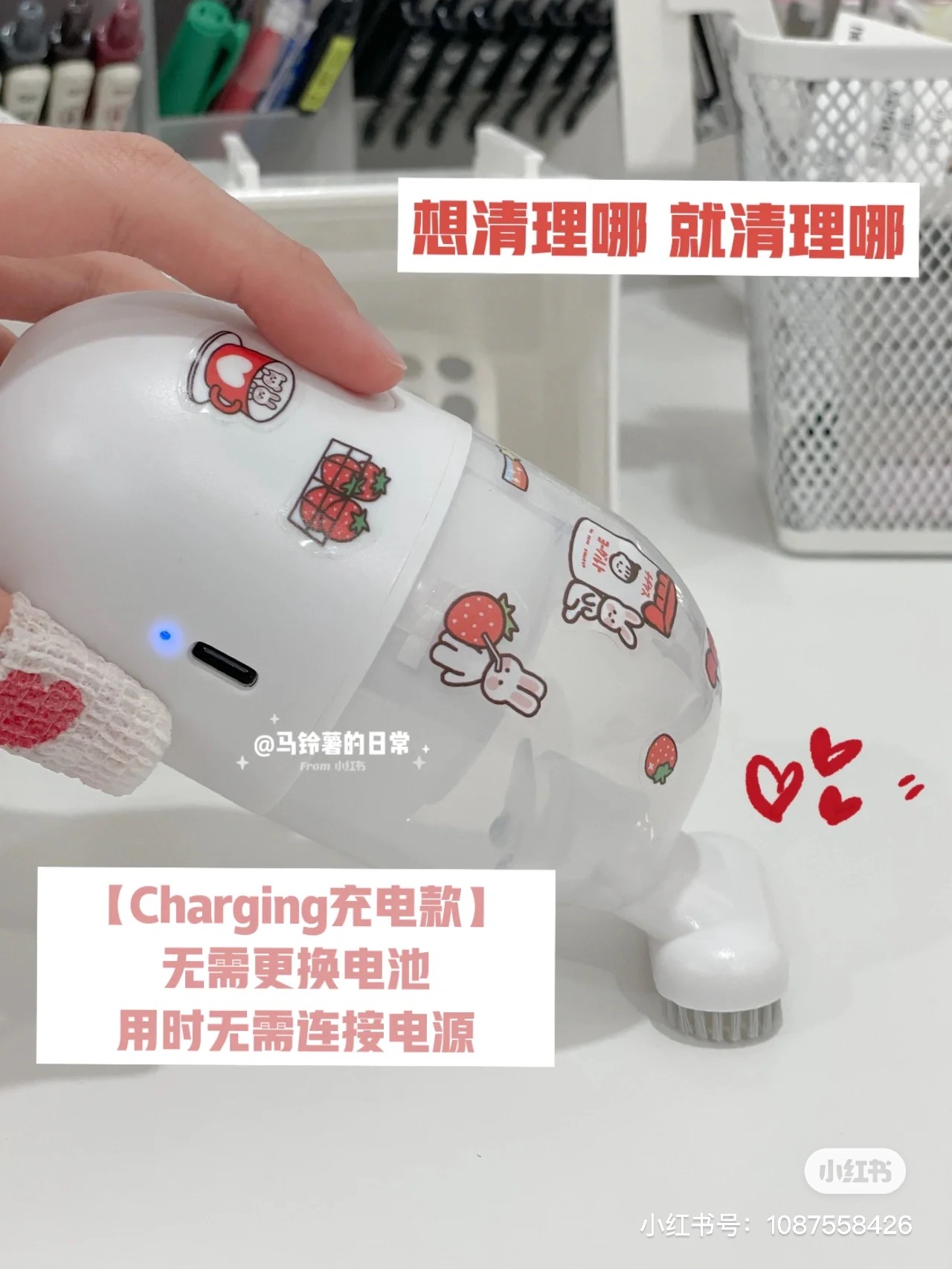 挖到宝了!每次很讨厌桌子脏兮兮的,橡皮屑、纸屑、不明物体等,桌子死角边还多灰尘。自从买了这桌面吸尘器后,超方便!!还能清理键盘,很干净啊啊啊~
