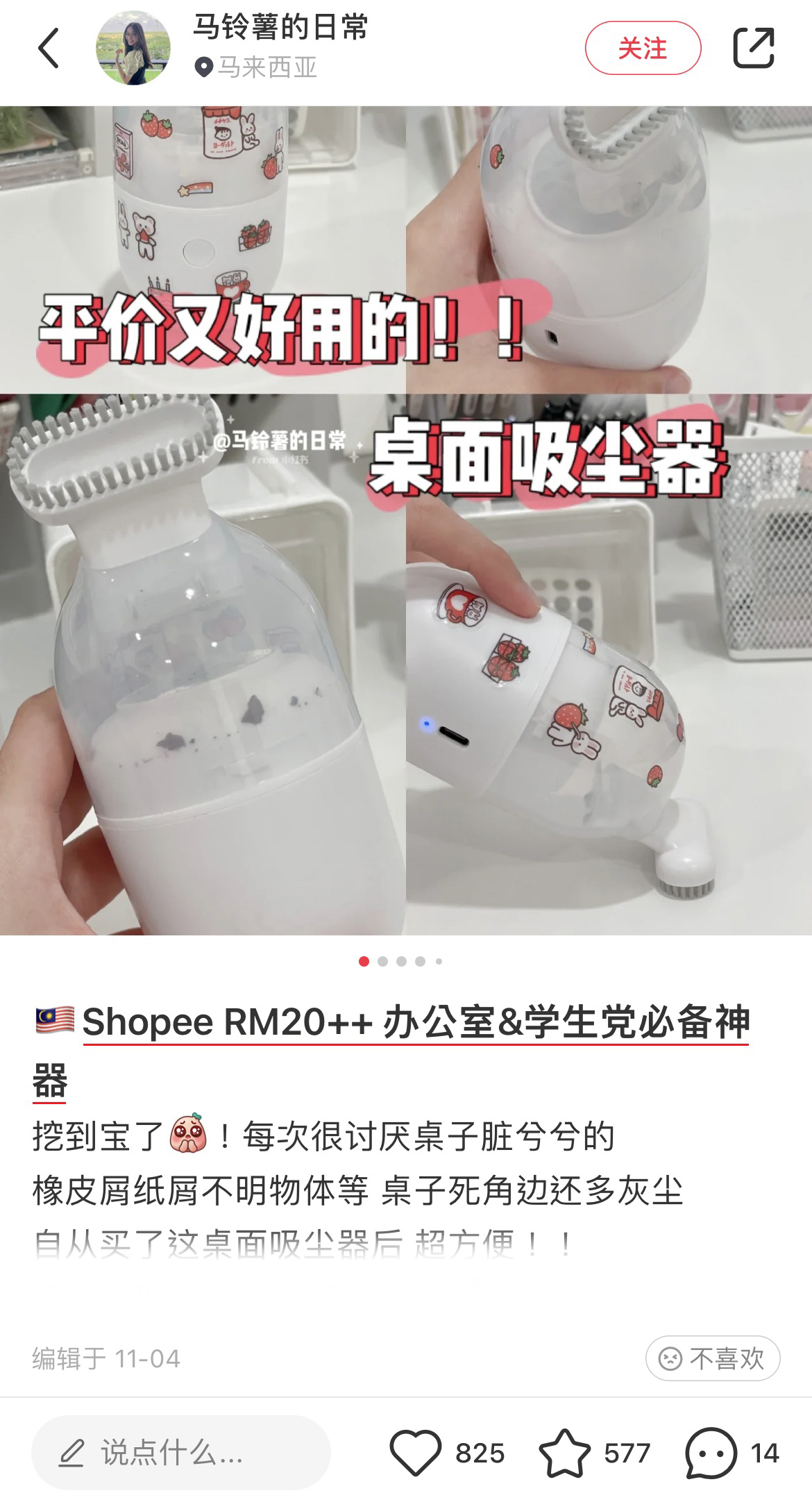 大马博主“马铃薯的日常”近日分享一个平价又好用的迷你吸尘器,是学生党或在办公室上班的朋友们非常需要的好物,RM30就能买到的快乐!