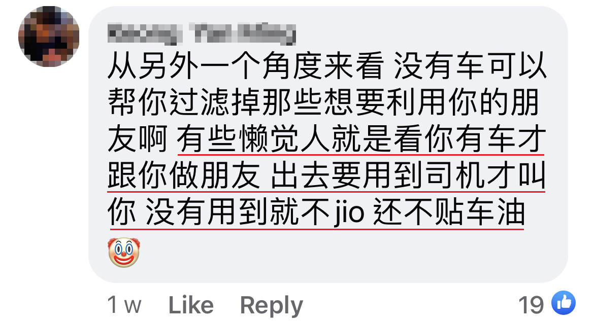 我只想跟各位没有驾车的同学说:这不是我们的错。也想呼吁有车的同学们,出去吃东西时,能的话就一起载那些没有车的同学吧!