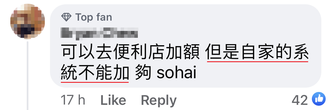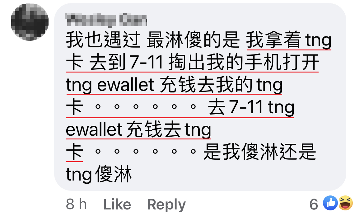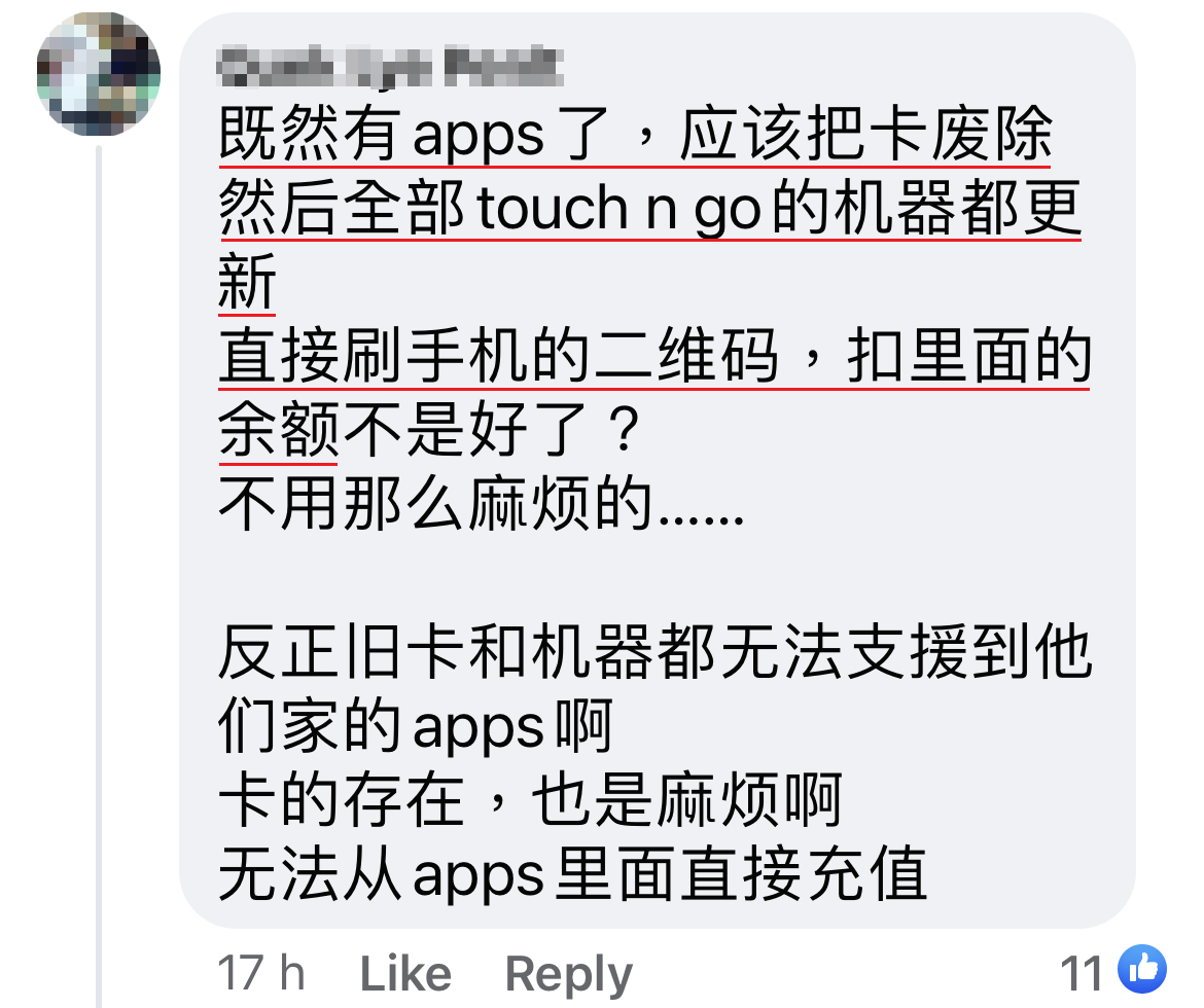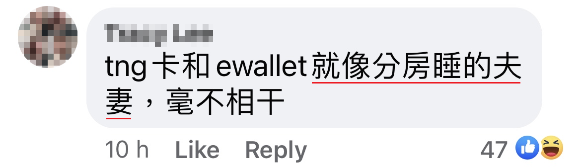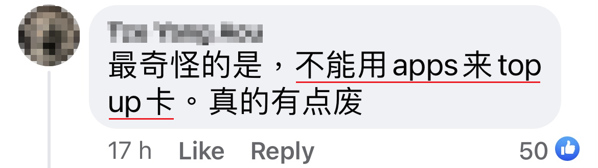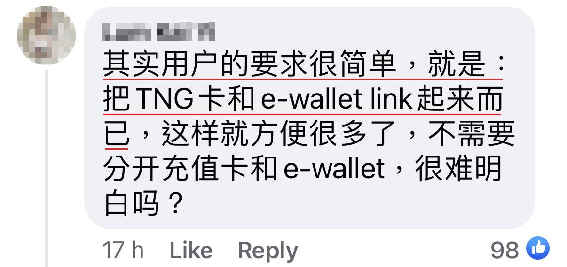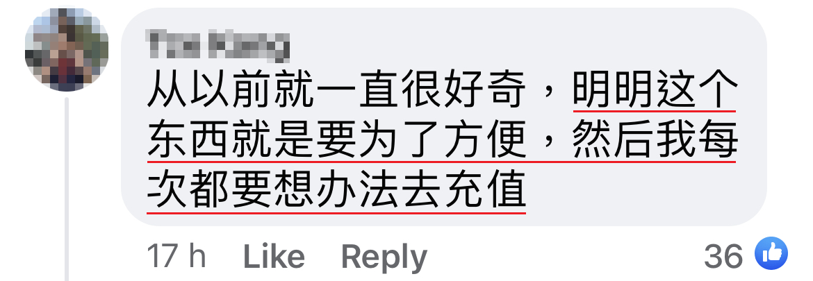 「若是在其他国家,他们的卡即使没有余额,也依旧可以在指定的几天内在没有余额的情况下预支使用。这应该要有一个应付紧急情况的备用系统,毕竟我们使用 TNG 这么长时间了,TNG 应该已经有我们的所有资料和我们使用过的记录。」