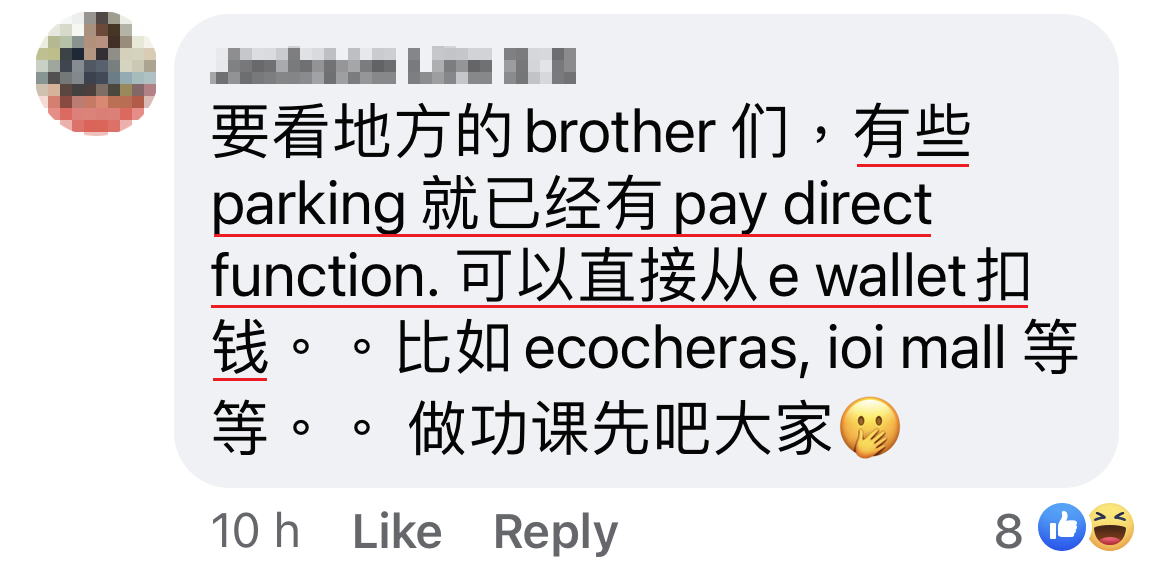 「平心而论,当时的我能够快速地解决问题是因为这是在一家商场,这里有商店和提款机都开着。试想想,如果今天换成是一名女性,半夜一个人——没有正在营业的商店也没有提款机,那该怎么办?搭 Grab 回家,明天才来取车?不是吧… 」