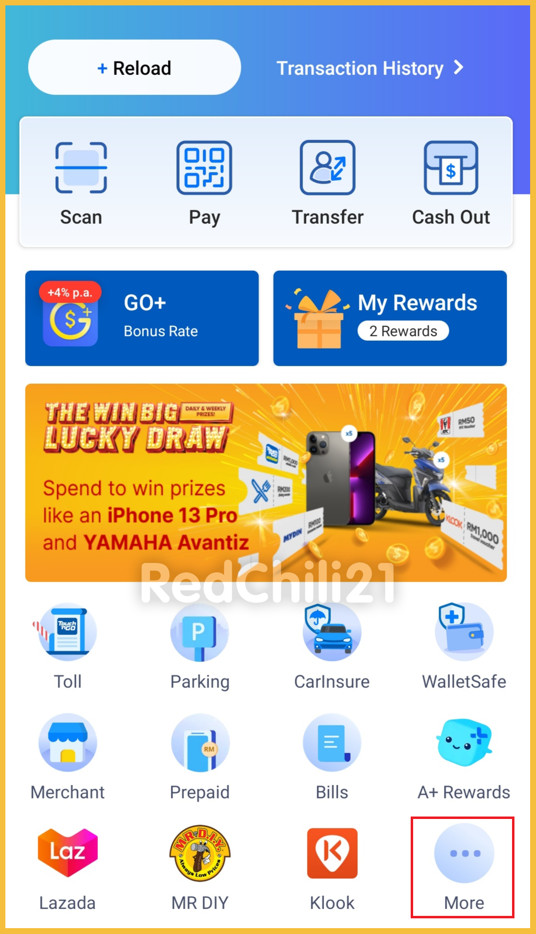 步骤1:打开TNG e-Wallet App,点击“More”。