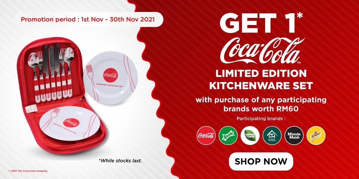 只要你在Coca-Cola Lazada 官网购买指定品牌汽水就可免费获得Coca-Cola 刀叉匙 + 碟子套组啦!有兴趣收藏的朋友,可别错过这次机会!