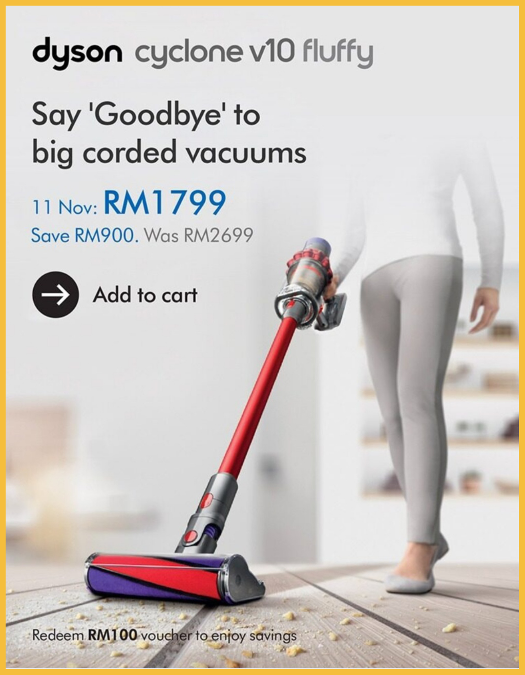 ▼ Dyson Cyclone V10 Fluffy Vacuum Cleaner – RM1799(原价RM2699;节省RM900)