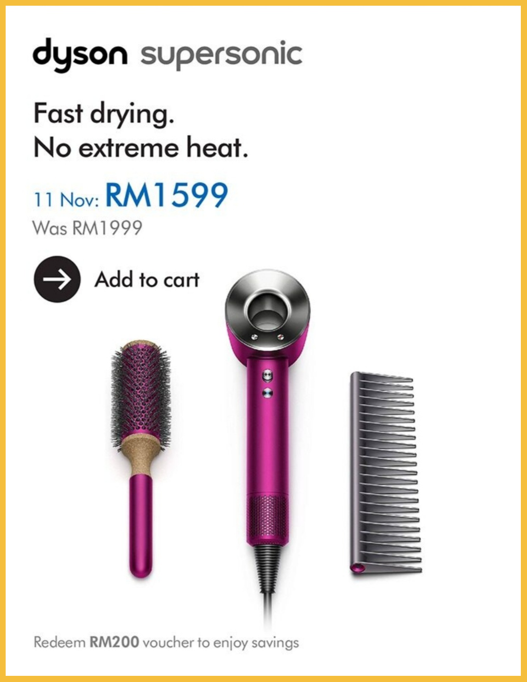 ▼ 像是Dyson Supersonic 吹风机,在11月11日这天购买只需RM1599(原价RM1999;包含梳子和刷子),整整帮你省下RM400!