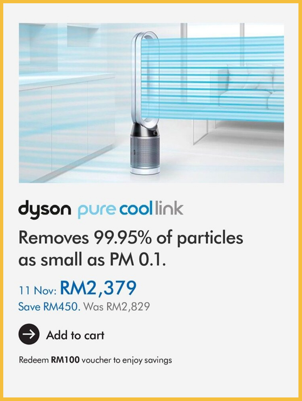 ▼ Dyson Pure Cool Link air purifier tower fan TP03 (White/Silver) – RM1399(原价RM2599;节省RM1200)