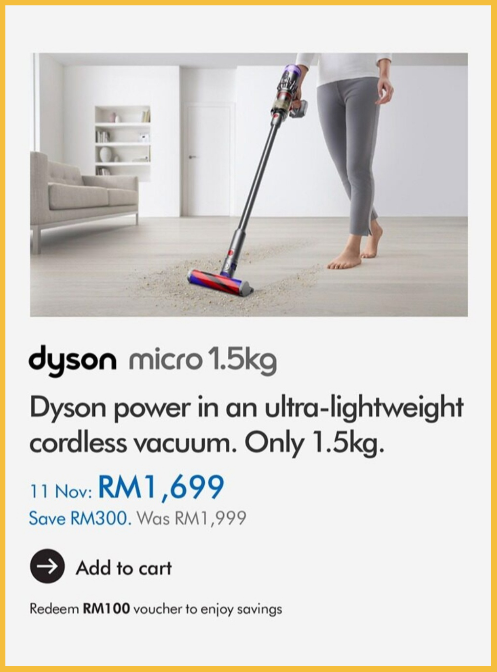 ▼ Dyson Micro 1.5kg Vacuum Cleaner – RM1699(原价RM1999;节省RM300)