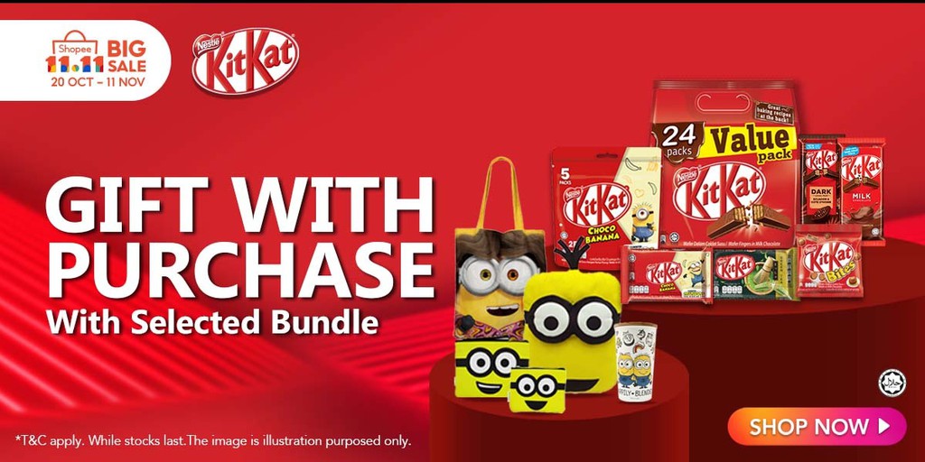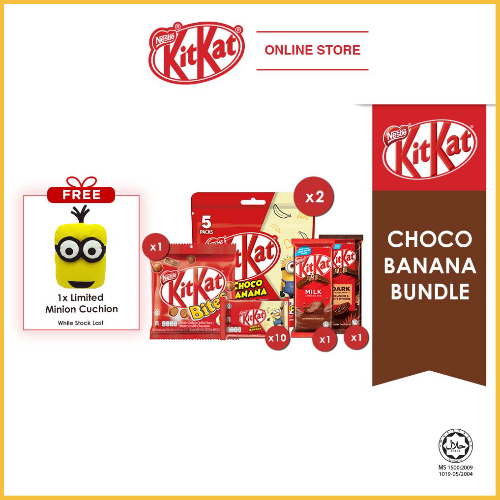 只要你在Shopee KitKat 官网购买指定KitKat ChocoBanana 巧克力套组,就可获得Minions 赠品啦!