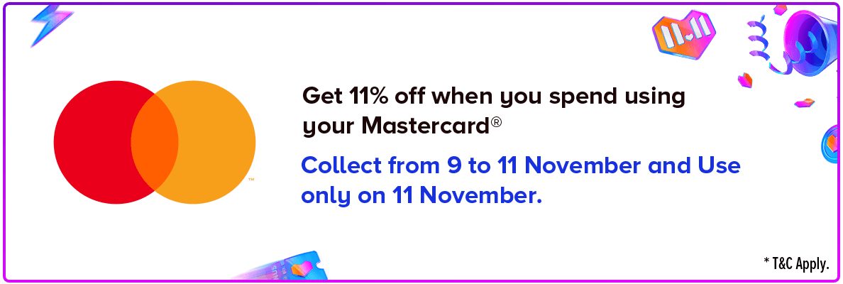 领取及使用优惠券日期:1 Nov 至 8 Nov 2021(除了 9 Nov 2021)