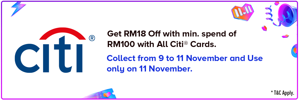 - 必须使用所有Lazada Citi® Credit Card 付款