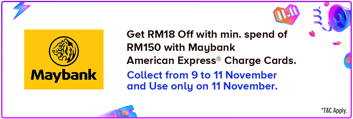- 结帐时必须输入优惠码【MBBAMEX11】才能享有RM18 折扣