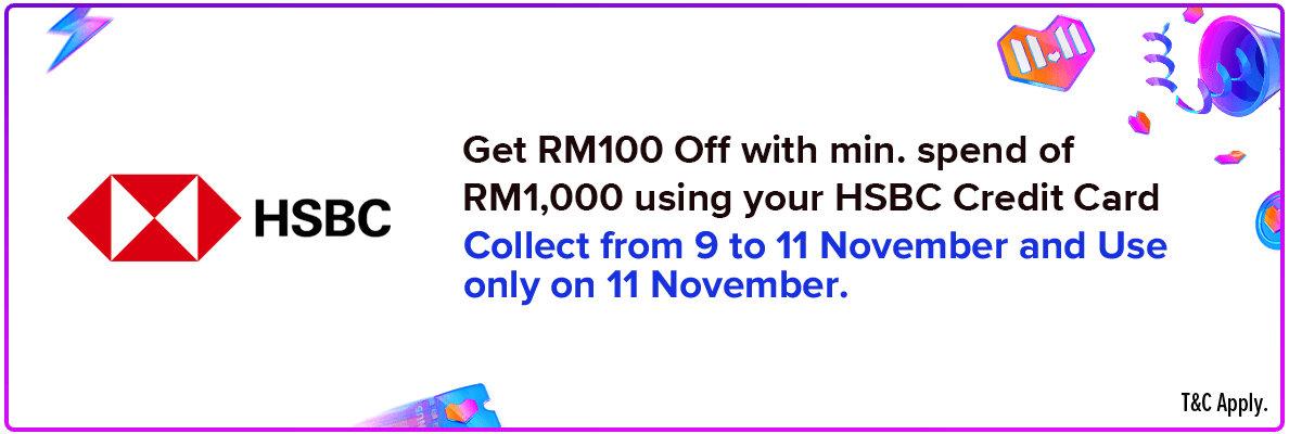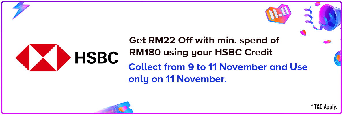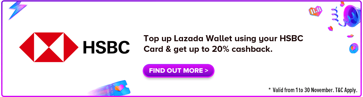 ▼ 使用HSBC Card 充值Lazada Wallet 可获得20% 现金回扣;(新用户)充值最低RM10 可获得RM10 现金回扣