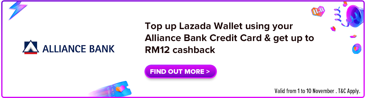 ▼ 使用Alliance Bank 信用卡充值Lazada Wallet 可获得RM12 回扣