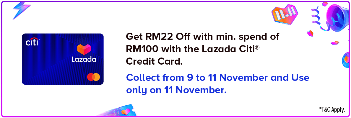 ▼ 消费RM100,折扣RM22(Lazada Citi Credit Card)