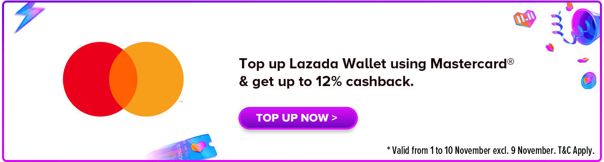 ▼ 使用Mastercard 充值Lazada Wallet 可获得12%现金回扣(高达RM12 | 首次)或9%现金回扣(高达RM9 | 旧用户)