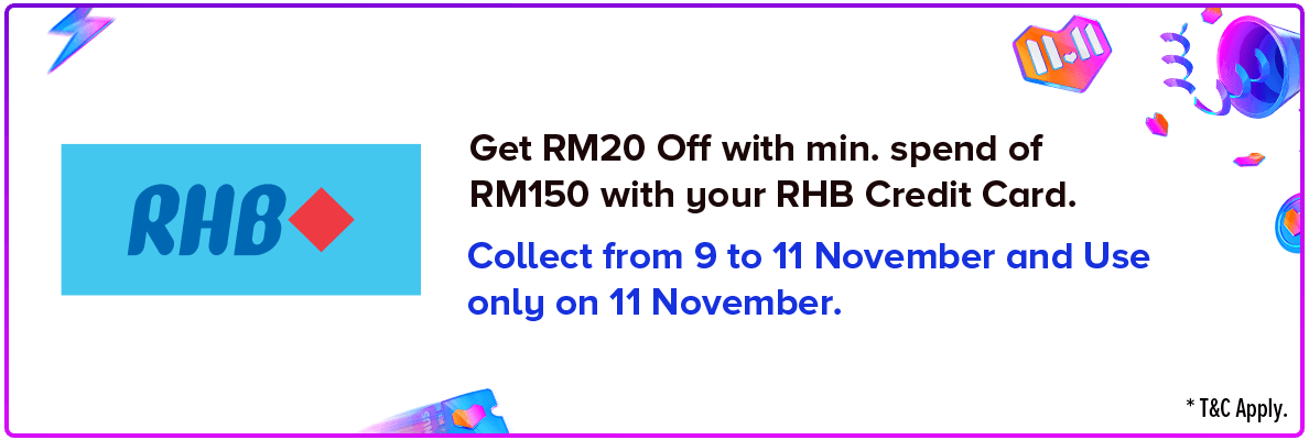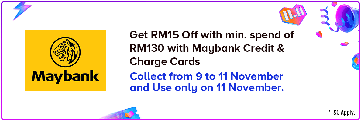 - 必须使用Maybank Credit & Charge Card(Visa, Master & Amex)