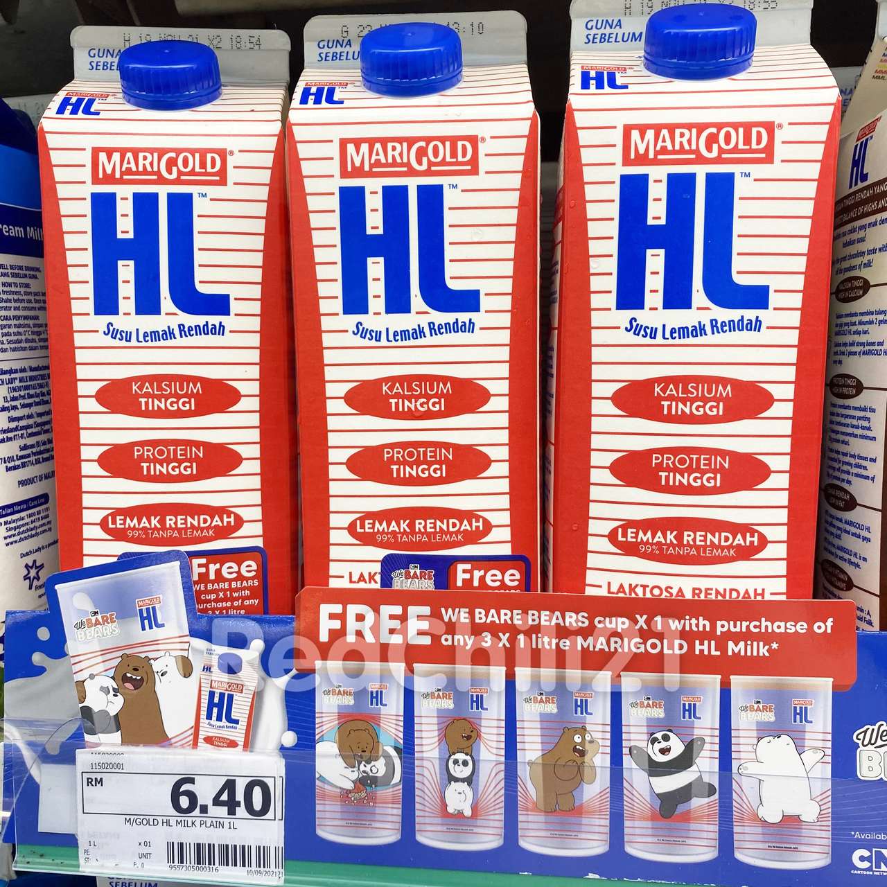 从即日起购买Marigold HL 盒装牛奶,可免费获得限量版We Bare Bears 杯子!只需购买3盒Marigold HL 盒装牛奶,就能获取一个We Bare Bears 杯子!