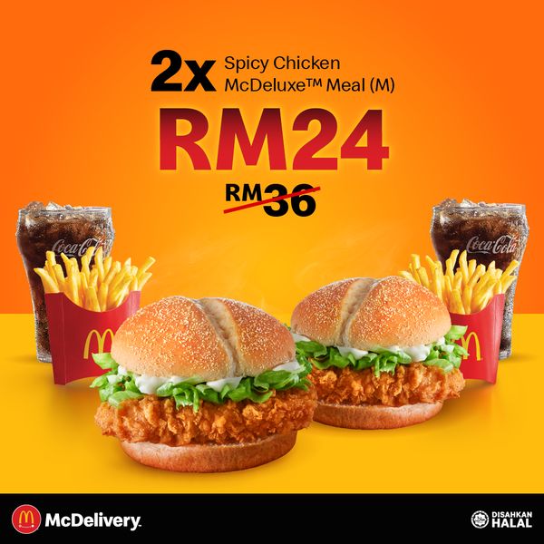 ▼ ⑥ 2份Spicy Chicken McDeluxe Meal (M) —— 只需 RM24