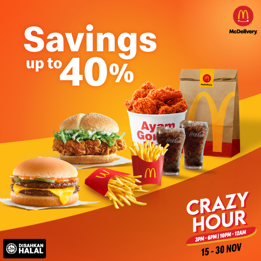 促销活动:McDelivery Crazy Hour 高达40%折扣优惠!