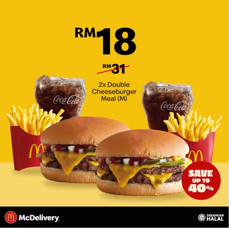 ▼ ③ 2份Double Cheeseburger Meal (M) —— 只需 RM18