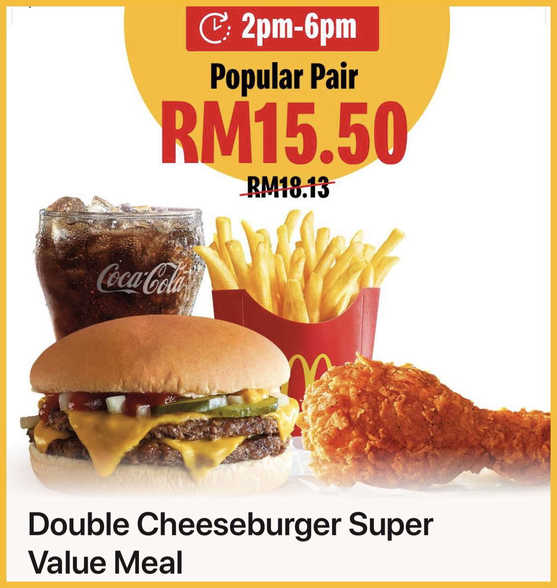 ▼ ① Double Cheeseburger Super Value Meal —— 只需 RM15.50