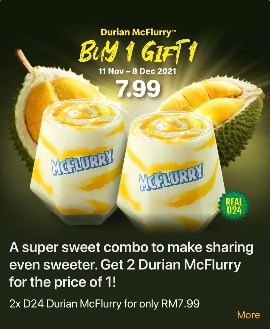 促销活动:大马麦当劳推出D24 Durian McFlurry 买一送一!