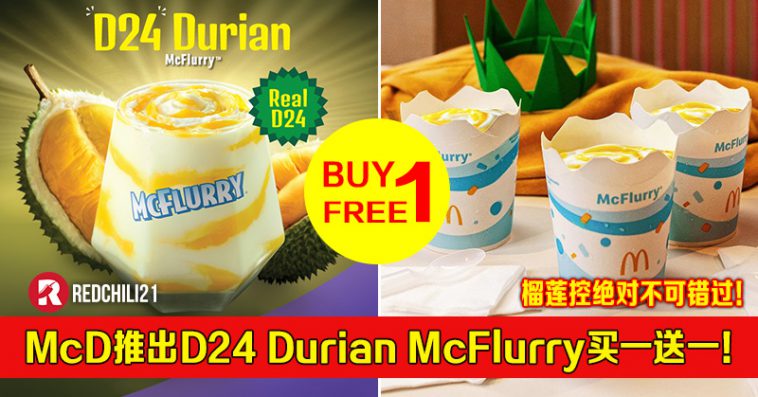 甜品控看这里,大马麦当劳推出D24 Durian McFlurry 买一送一啦!
