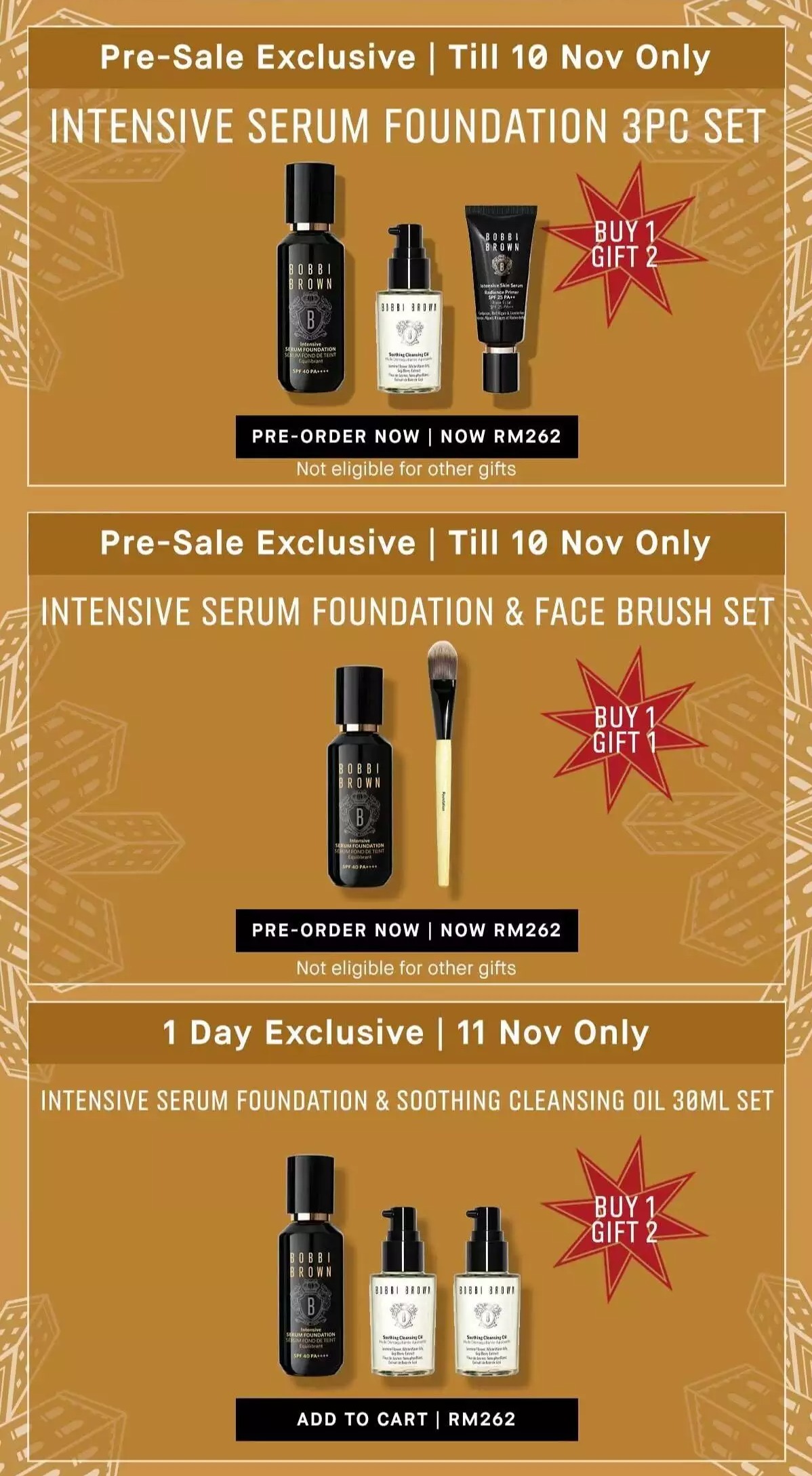 - Bobbi Brown Intensive Serum Foundation + Soothing Cleansing Oil + Intensive Skin Serum Radiance Primer – RM262【点击这里】
