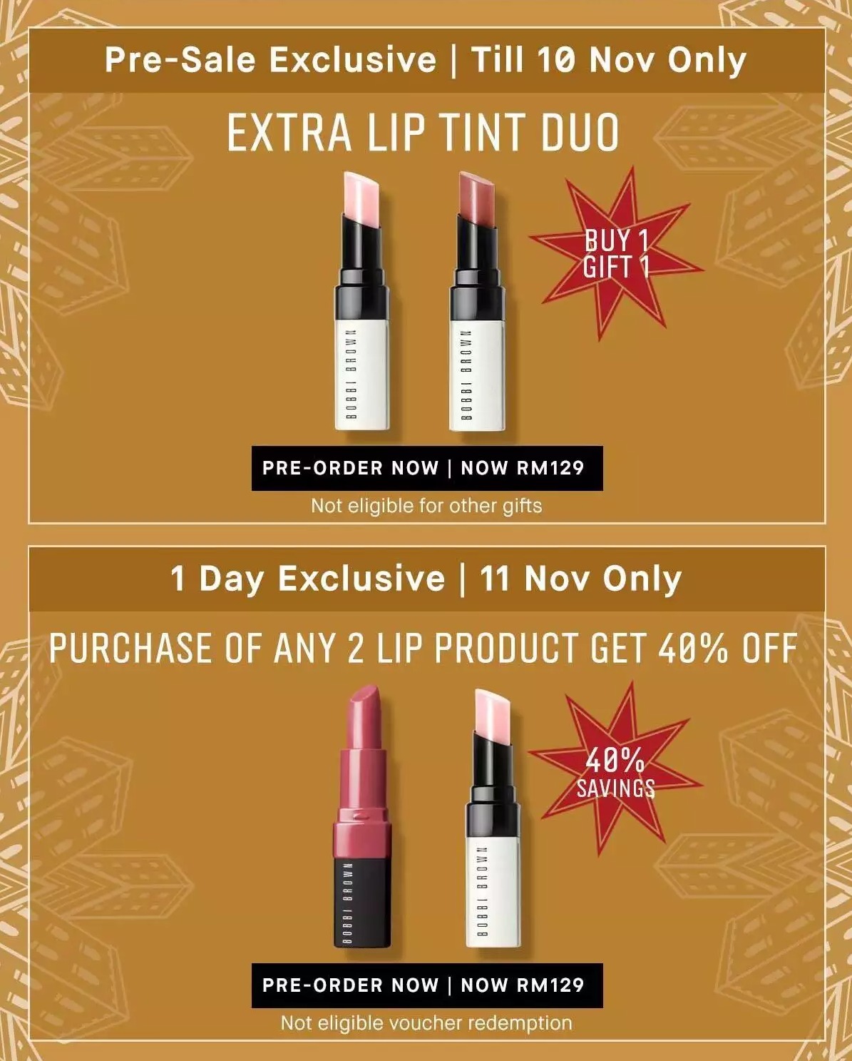 - Bobbi Brown Extra Lip Tint (买一送一) – RM129【点击这里】