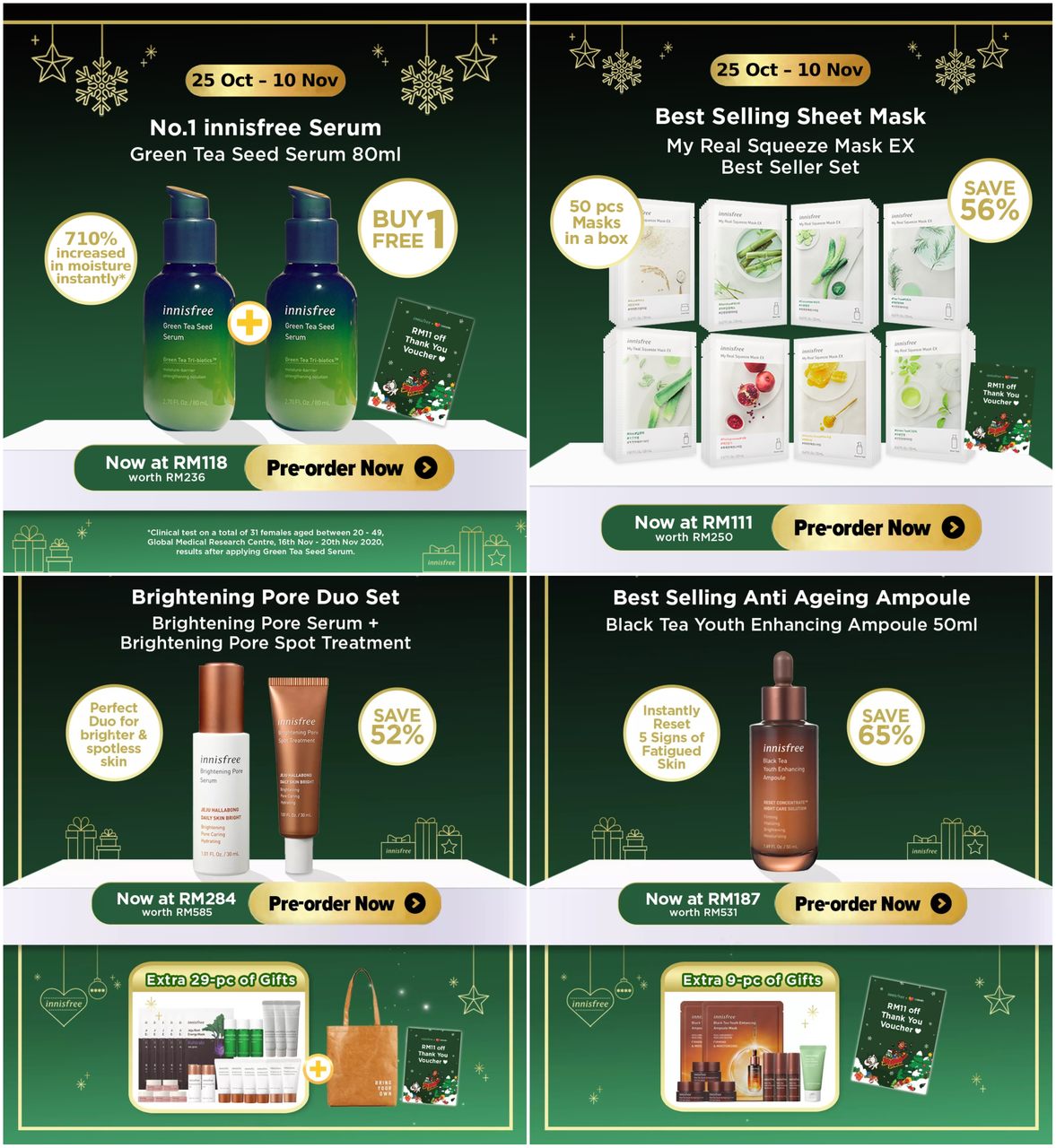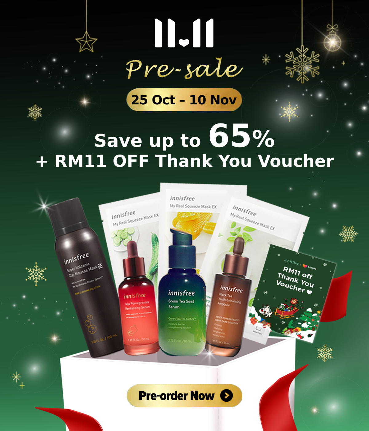 7)Innisfree —— 指定商品买一送一;折扣高达65% + RM11 感谢折扣券