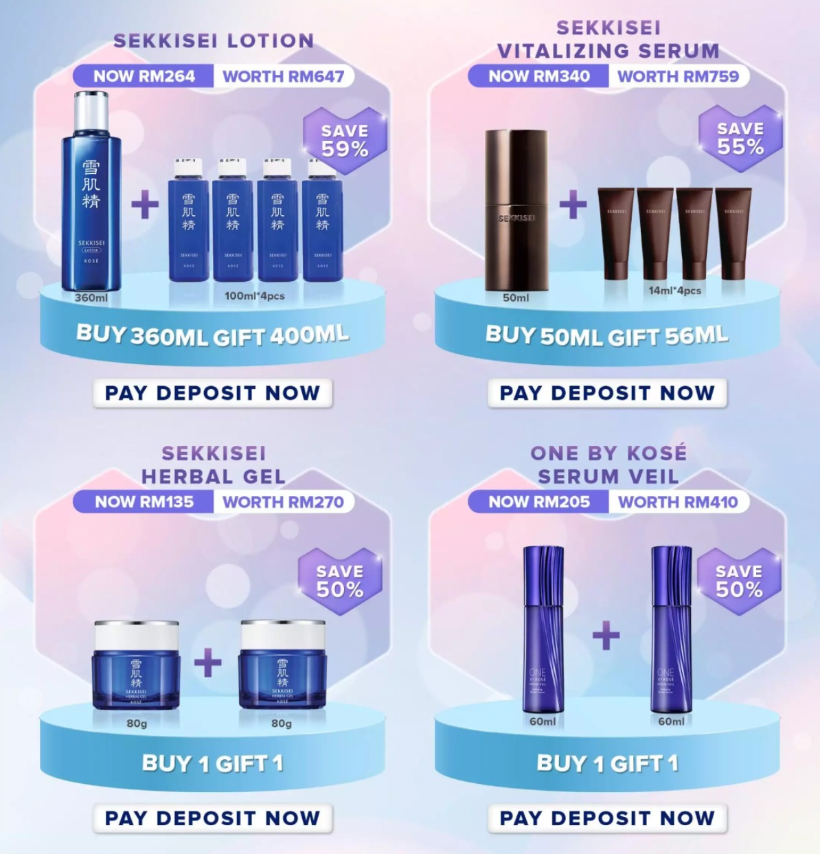 - Kose Sekkisei Essential Kit (Washing Foam+ Clear Whitening Mask) (买二送二) – RM180【点击这里】
