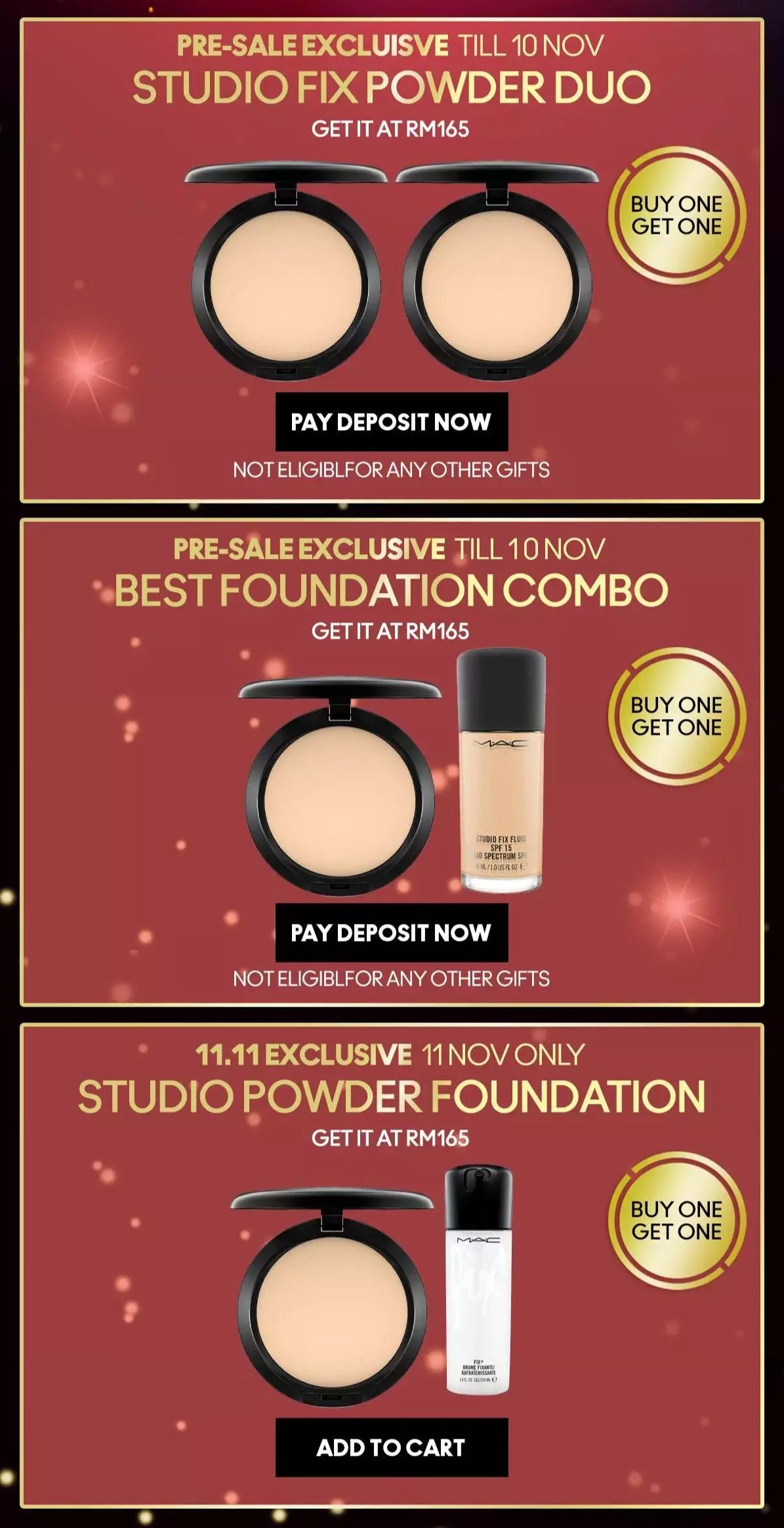 - MAC 2-pcs Face Set with Studio Fix Powder Foundation(买一送一) – RM165【点击这里】