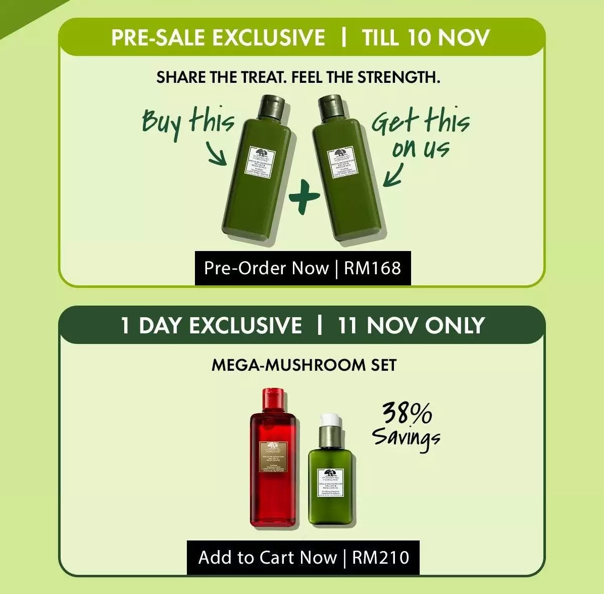 - Mega-Mushroom Treatment Lotion 200ml + Mega-Mushroom Fortifying Emulsion 100ml(买一送一)- RM210【点击这里】(此配套仅限11月11日)