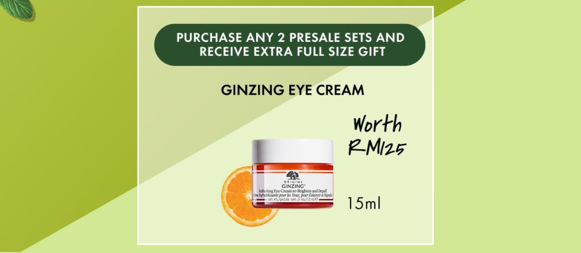 ▼ 购买2套预购产品优惠,免费送出Ginzing Eye Cream 15ml(价值RM125)!