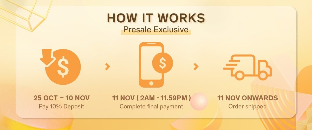 - 预购日期:即日起至 10 Nov 2021(11月11日缴付剩下余额)