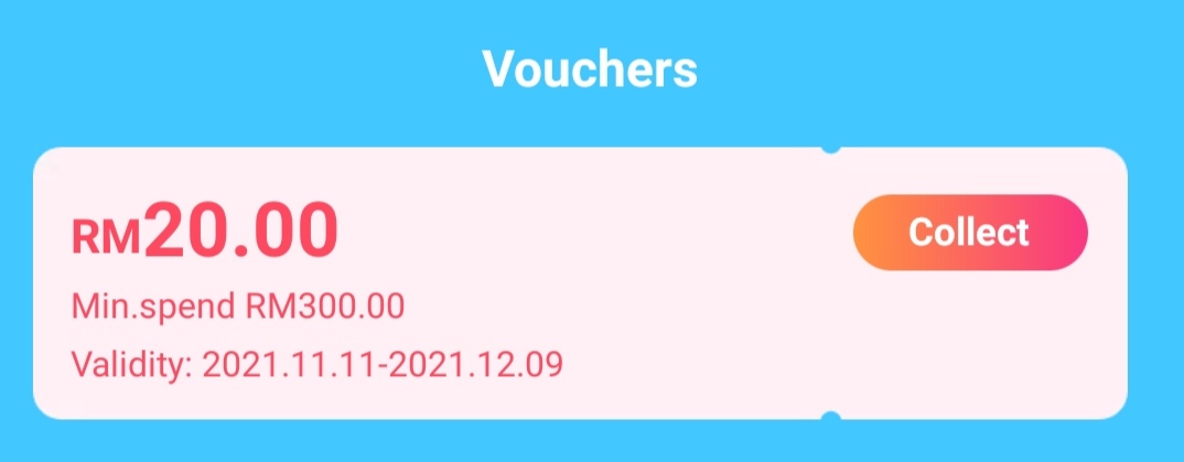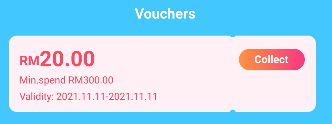 - 消费RM300,可折扣RM20(仅限11月11日使用)
