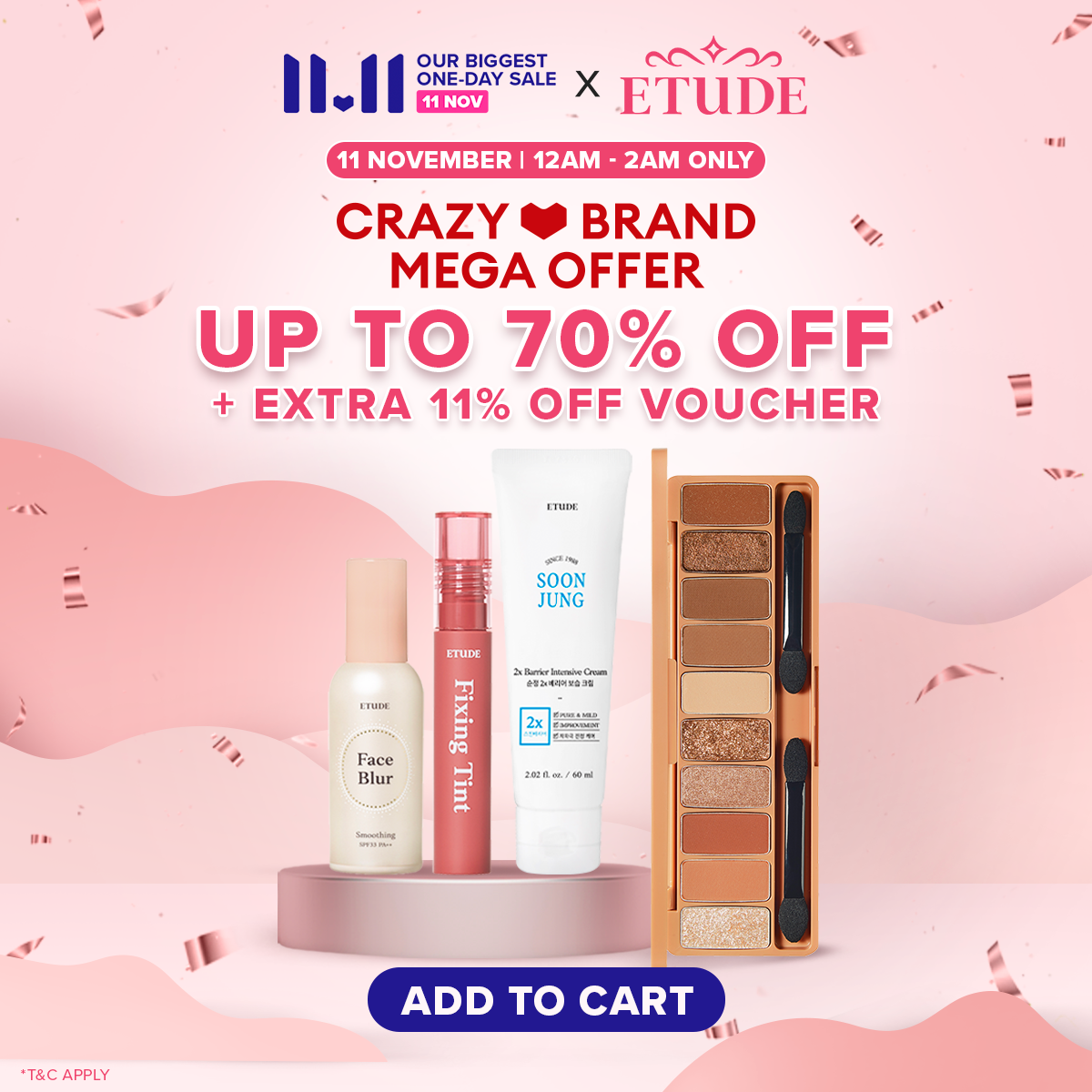 14)Etude House —— 指定产品买一送一;折扣高达70% + 领取11%折扣券