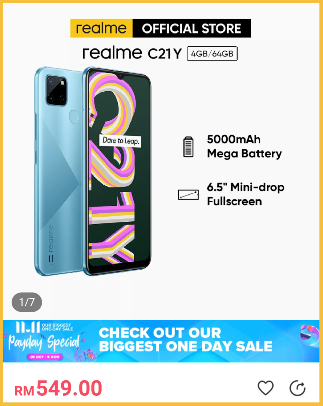 这项优惠是由大马网购平台Lazada 与各大品牌手机旗舰店推出【11.11】折扣优惠!近期想购买不超过RM1000 的新手机的朋友,可参考以下10款型号手机!