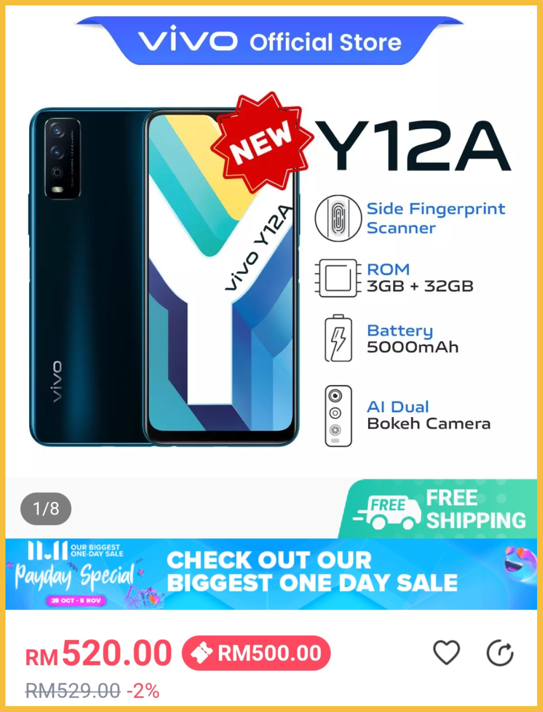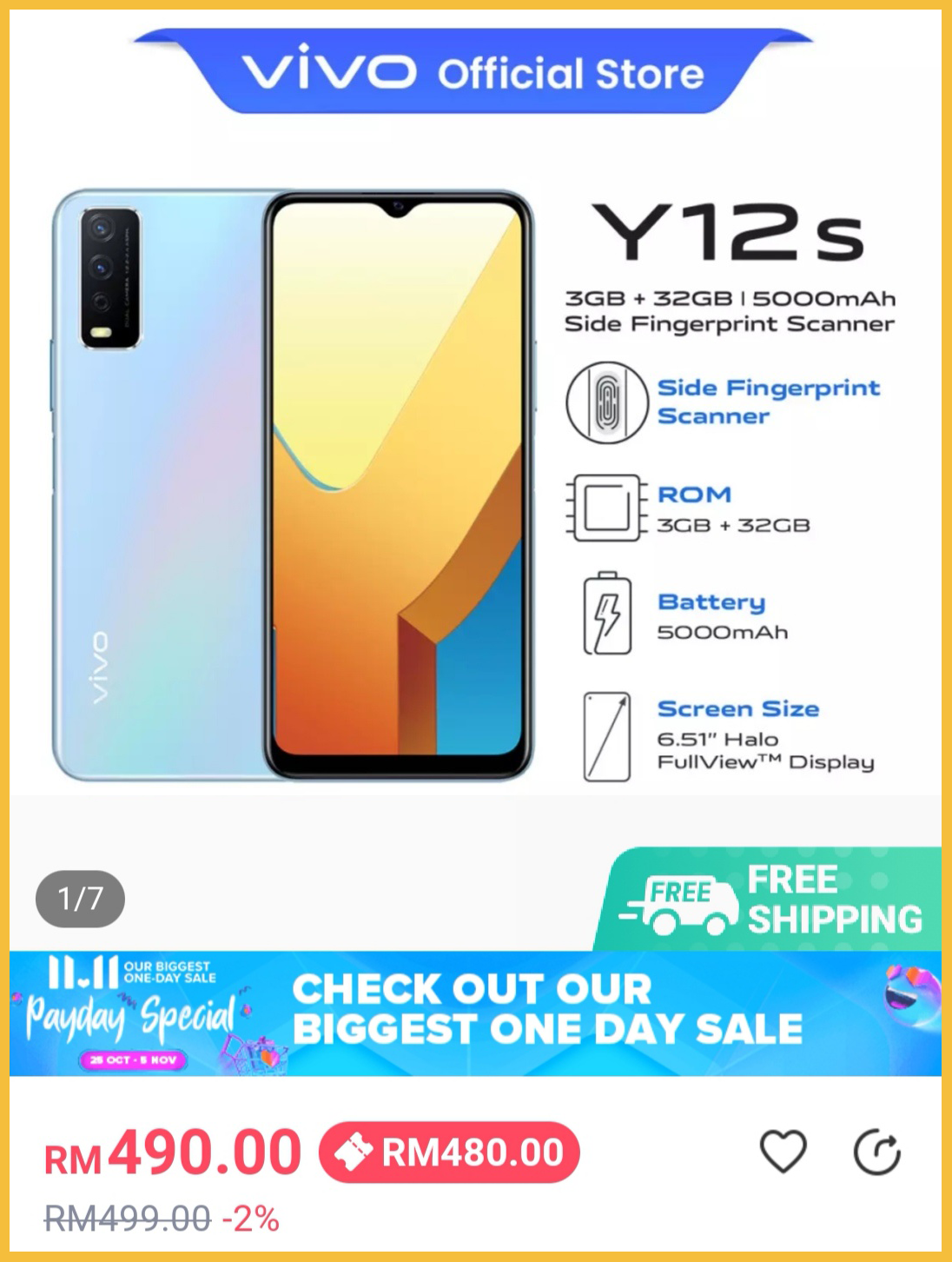 ▼ Vivo Y12s Smartphone – RM499 RM480(领取店家折扣券后的价格)