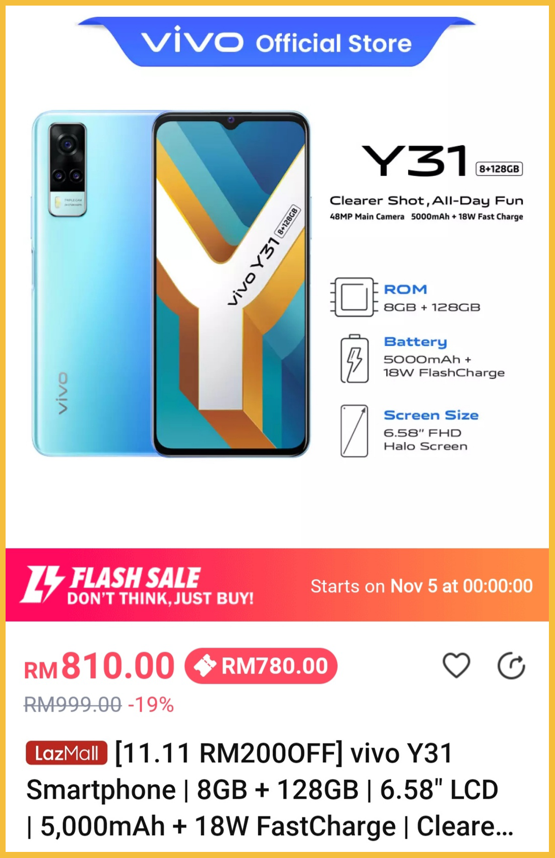 ▼ vivo Y31 Smartphone – RM810 RM780(领取店家折扣券后的价格)