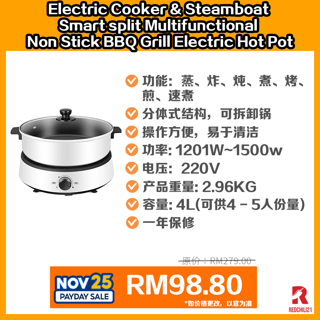 Electric Cooker & Steamboat Smart split Multifunctional Non Stick BBQ Grill Electric Hot Pot