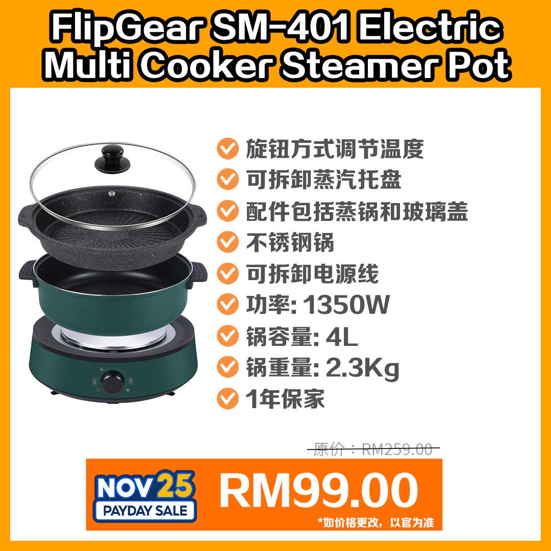 FlipGear SM-401 Electric Multi Cooker Steamer Pot