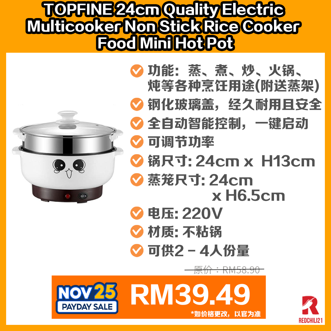 TOPFINE 24cm/26cm Quality Electric Multicooker Non Stick Rice Cooker Food Mini Hot Pot