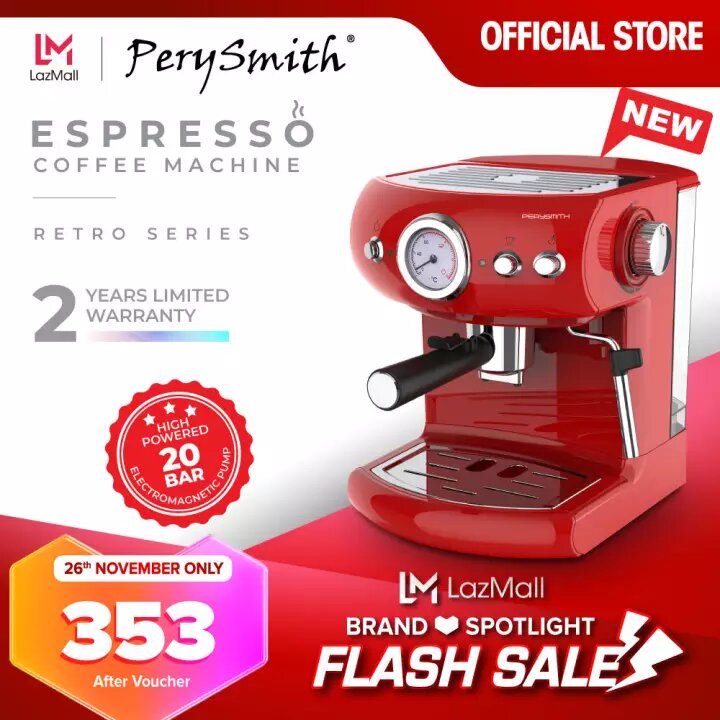 ▼ PerySmith 20BAR Espresso Coffee Machine Retro Series RT2000